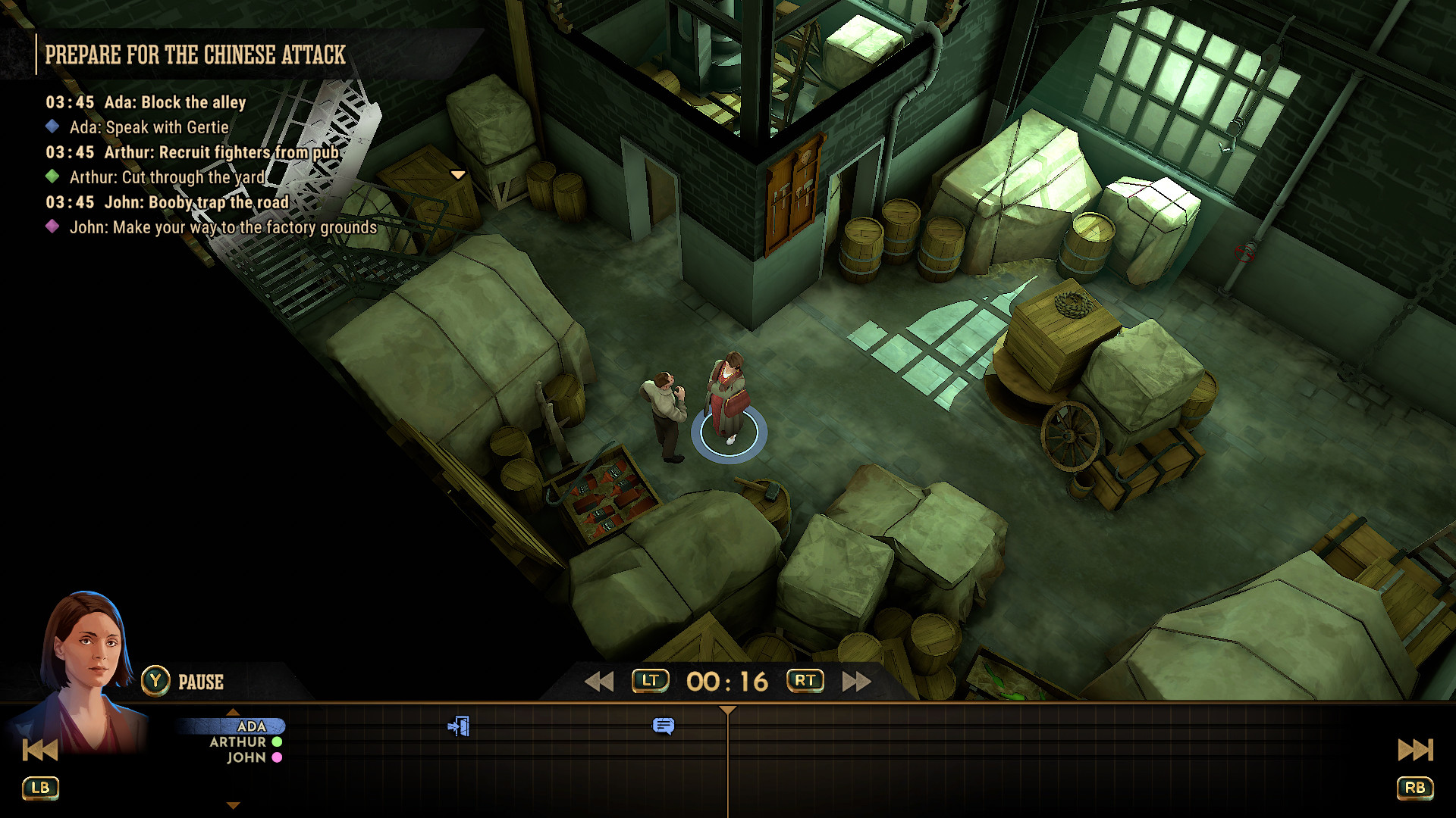 每个角色的行动自动记录在一条时间线中,而你可以自由重置、快进和倒转时间,直到计划被调整得完美无缺。