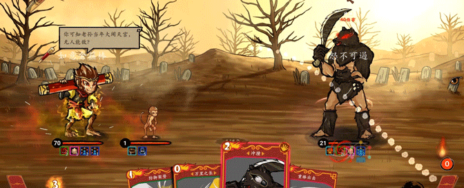 悟空在人们的记忆中是上天入地无所其不能,在本作中悟空亦是如此。不仅能通过卡片改变金箍棒的长短,召唤猴子猴孙协助自己对战,还能通过“七十二变”获取敌人的意图!(谁会拒绝一个能偷BOSS技能的卡片呢~)