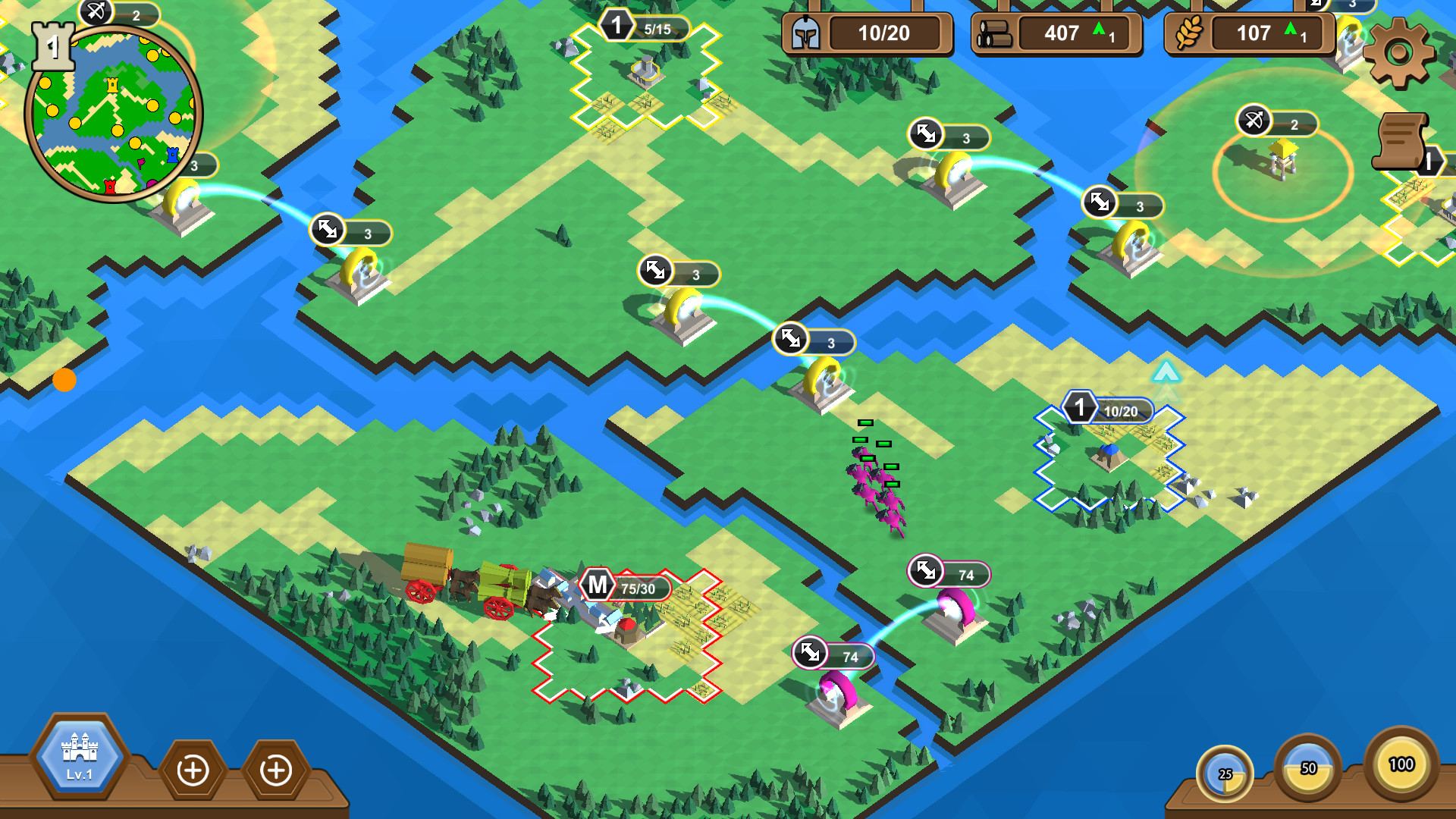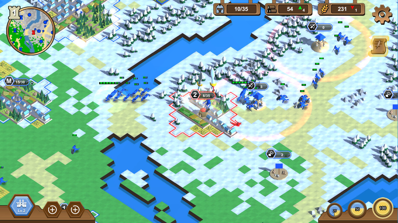 将训练好的士兵从你的城池中派向敌人的城池,你要考虑清楚,如何将适当数量的士兵放在派往适当的战场!消灭敌人并占领他们的城市,抢夺他们的资源吧!