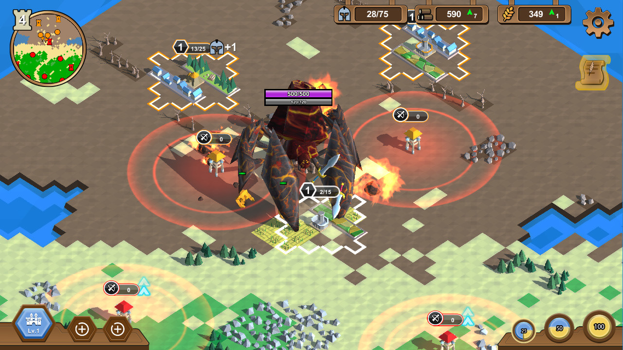 《KOF》是一款魔幻背景的即时战略游戏,的以调遣兵力占领城市为基础玩法,结合了资源采集、建造、升级、塔防等要素。