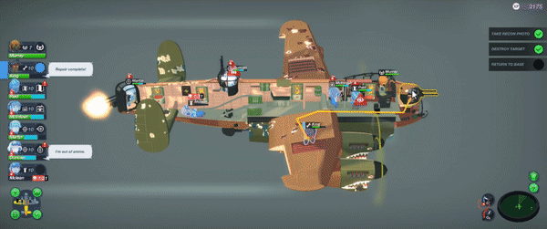 从燃料、液压到弹药,你需要微操队员去进行这架二战轰炸机上面的一切行动。当然你也可以自定义这家飞机,用游戏内自带的工具给它添加各种个性的图层,给它画个小丑鼻子或许会震慑敌人。