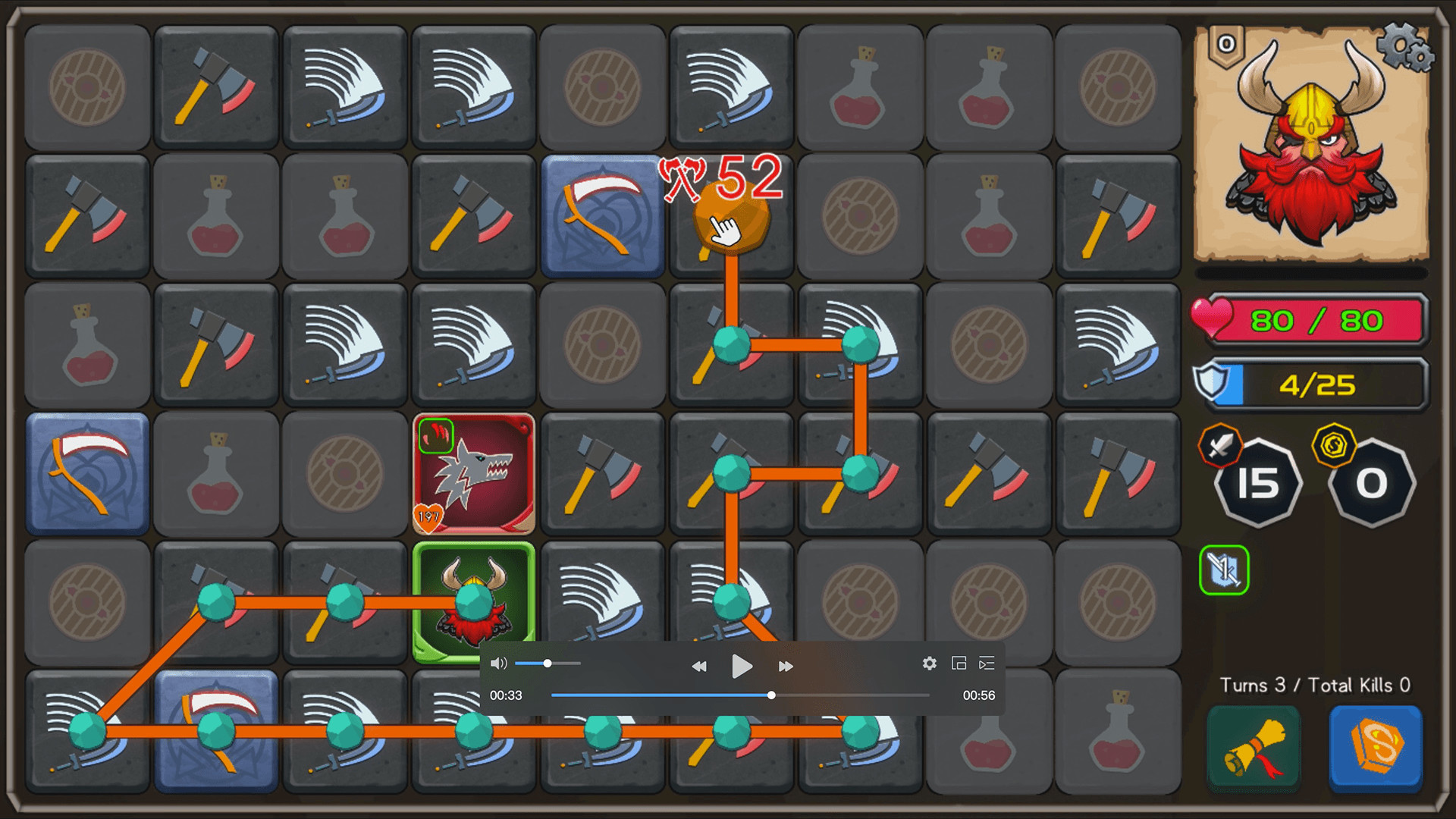 当你控制富有个性的角色在棋盘上驰骋时,各种身怀绝技的怪物尾随而至。在你完成一次连线移动后,怪物就会向你发起冲锋,并使用各具特色的攻击方法和你“打招呼”。