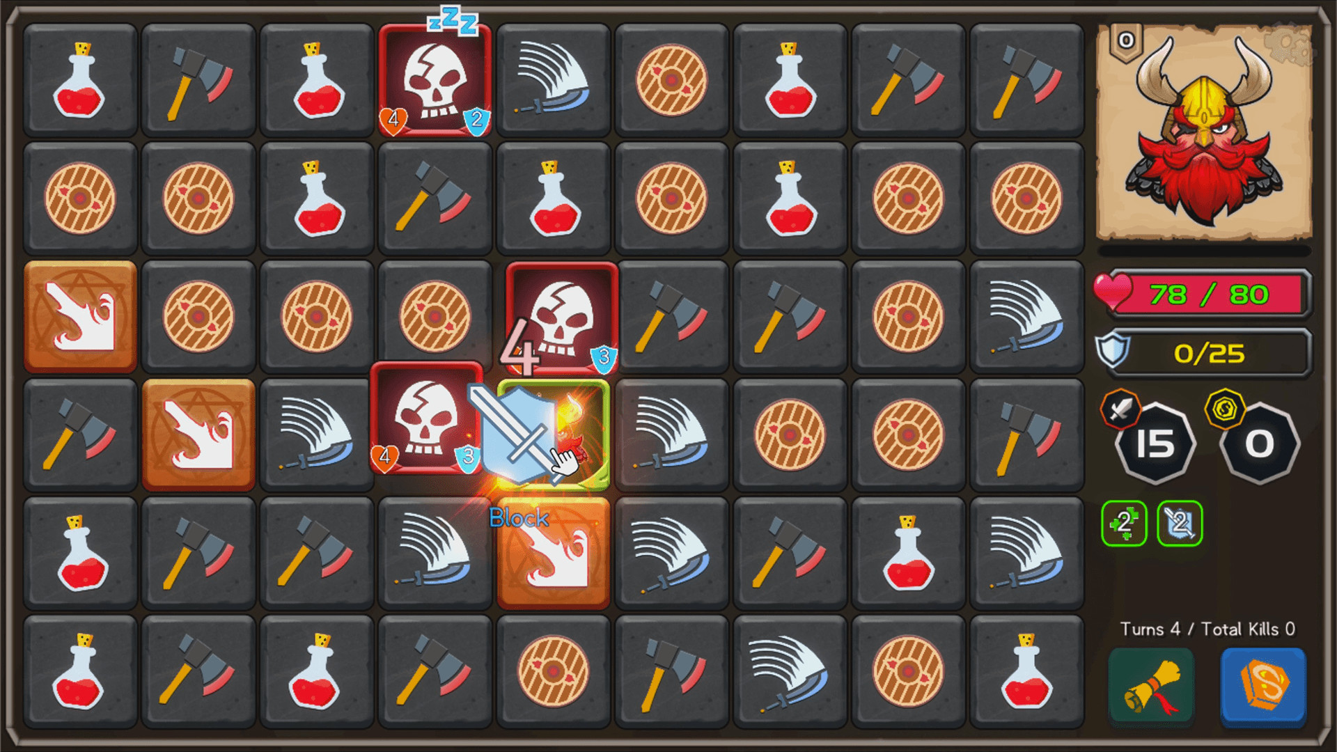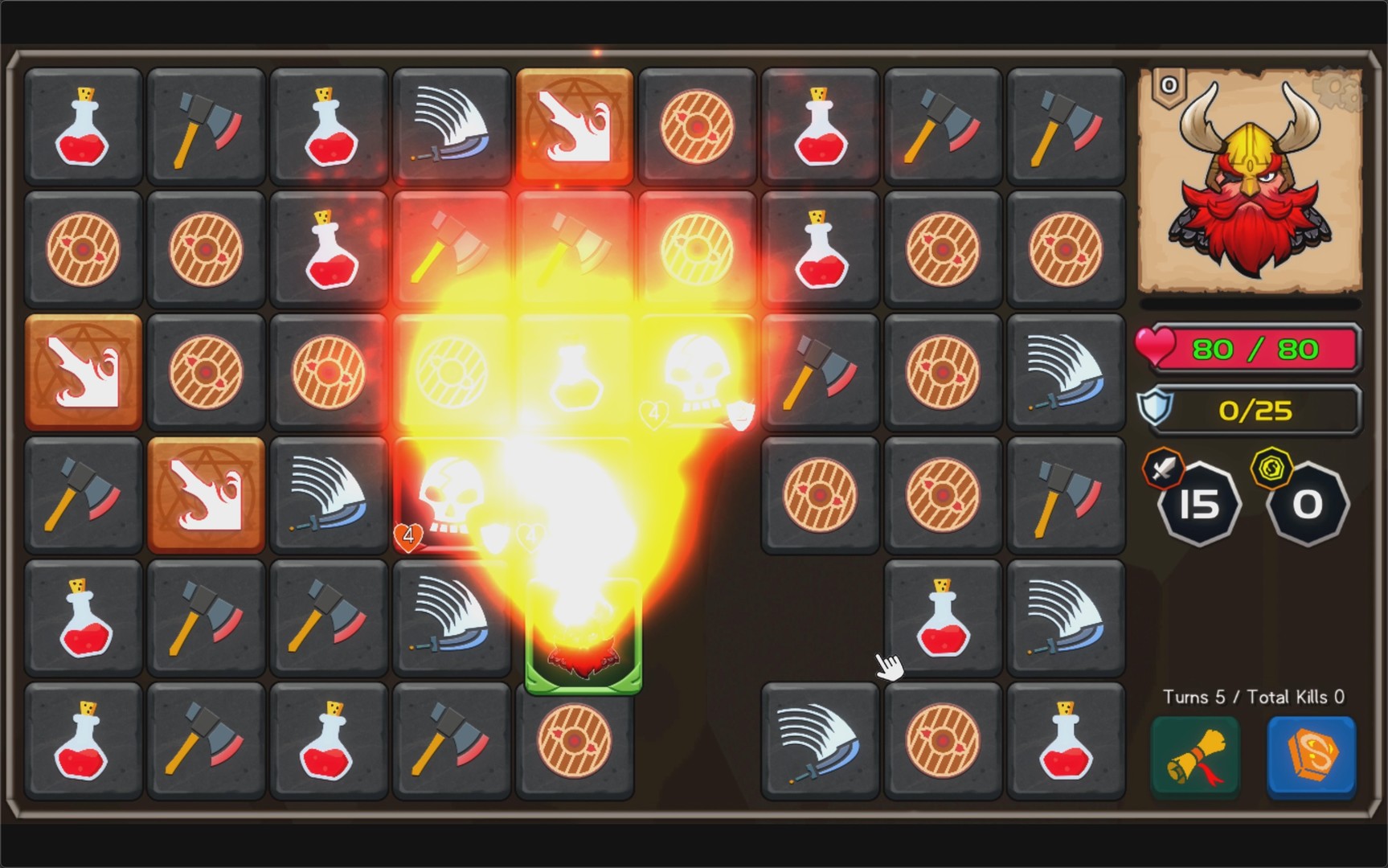 《矮人与地城》与传统的战斗类消除游戏不同,将战斗部分和消除部分进行有机结合,不再是“消除=〉战斗”的顺序运行,而是将你控制的角色置于消除棋盘中,所有消除动作都必须从角色所在位置发起,在消除的同时完成角色的走位。
