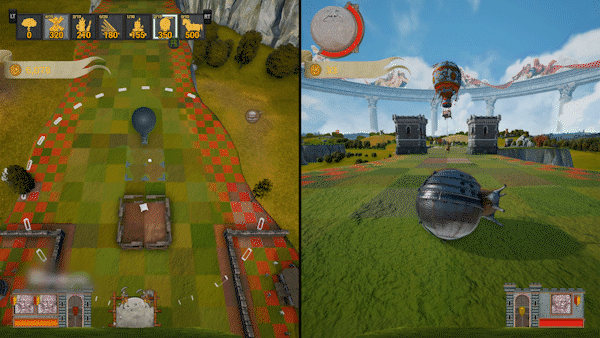 在多至4人玩家模式或2人玩家分屏模式中,建造防御并竞速击破你对手的防御。