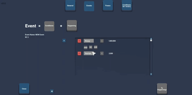 在地图编辑器中,你不仅可以创建你的完美地图。你还可以用事件来填充它。哪些建筑应该在哪些条件下解锁。一场比赛,你不能建造道路或者没有最小地图?你想让自然灾害在特定条件下发生在某个地方?试试吧!