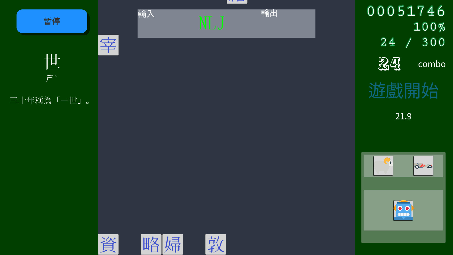 \r\n\t键盘魅影是一个中打游戏。正确的输入掉落的汉字以取得高分,同时避免汉字堆栈过高。\r\n