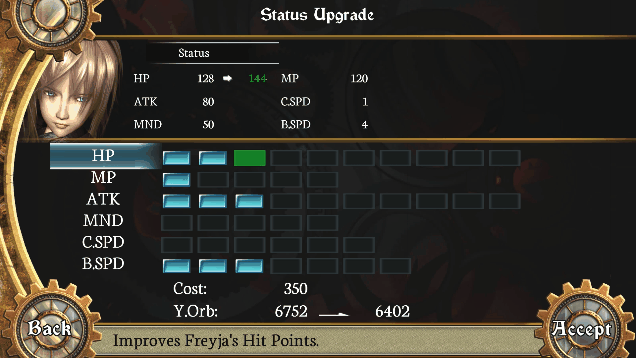 这是Freyja的最基本升级。以黄色球为交换,玩家可以增强Freyja的基本属性。他们可以提高她的生命值,法力值,攻击伤害或提高她的心灵(这提高了她的最终量表填满满速度)。