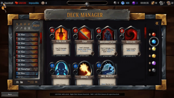 虽然在每个回合开始时你都会回复一些能量,但除弃卡牌才能让你最终决定你应该出哪些牌,以及你应该牺牲哪些牌来为之后的回合做准备。右击卡牌将其除弃,送到弃牌堆并获得1点能量。