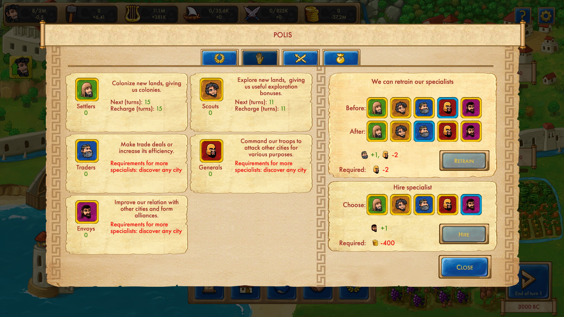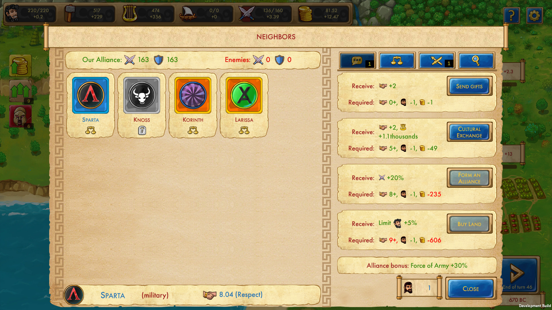 您之于城邦的选择将决定您所使用的策略:雅典的外交风格、柯林斯的贸易风格以及斯巴达的军事风格。