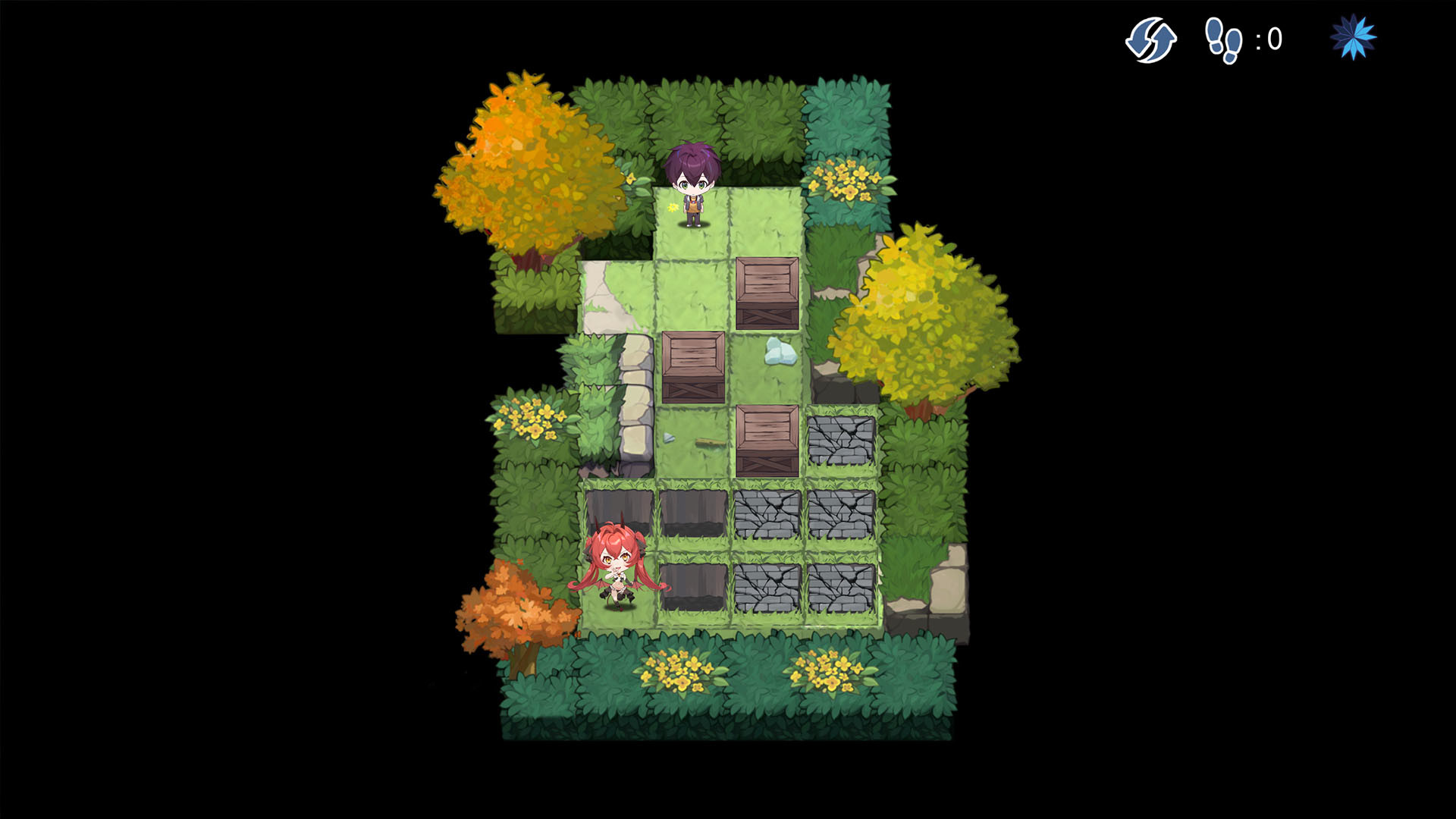 這是一款推箱子的休閑游戲。玩家需要控制男孩找到妹子完成任務進入下一關卡。巧妙的關卡設計和精美的角色立繪使玩家開動腦筋,發揮你的智慧,營救被困的妹子。