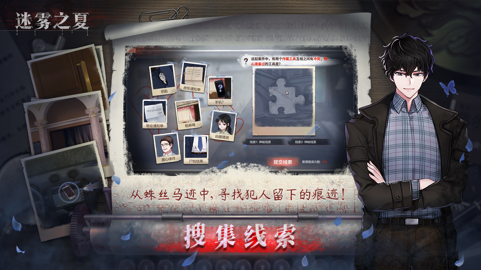 《迷雾之夏》是一款剧情向文字avg推理冒险游戏,经典的暴雪山庄模式,游戏进程由你的推理与选择推动。 你将深入案件幸存者的记忆,在与外界失去联系的山顶孤岛别墅内度过惊心动魄的7天。 你还将看到围绕在主角身边真挚的情感,冰冷的恶意和隐藏在重重迷雾下的真相。 一切,等你揭晓……