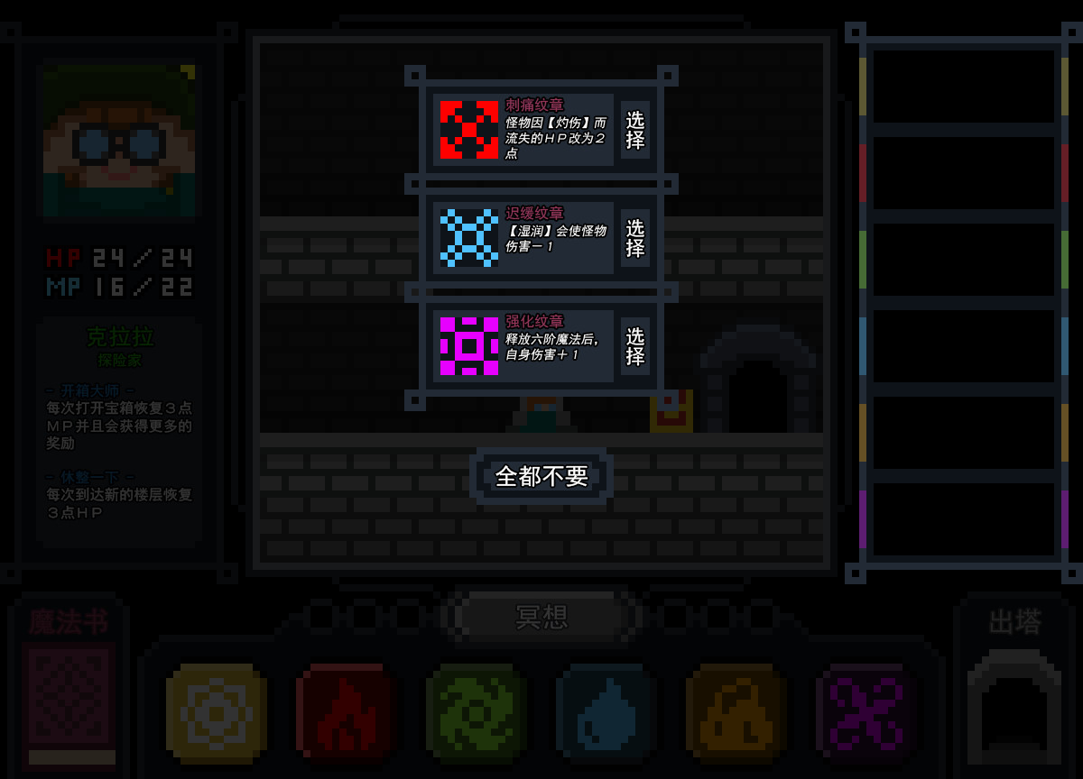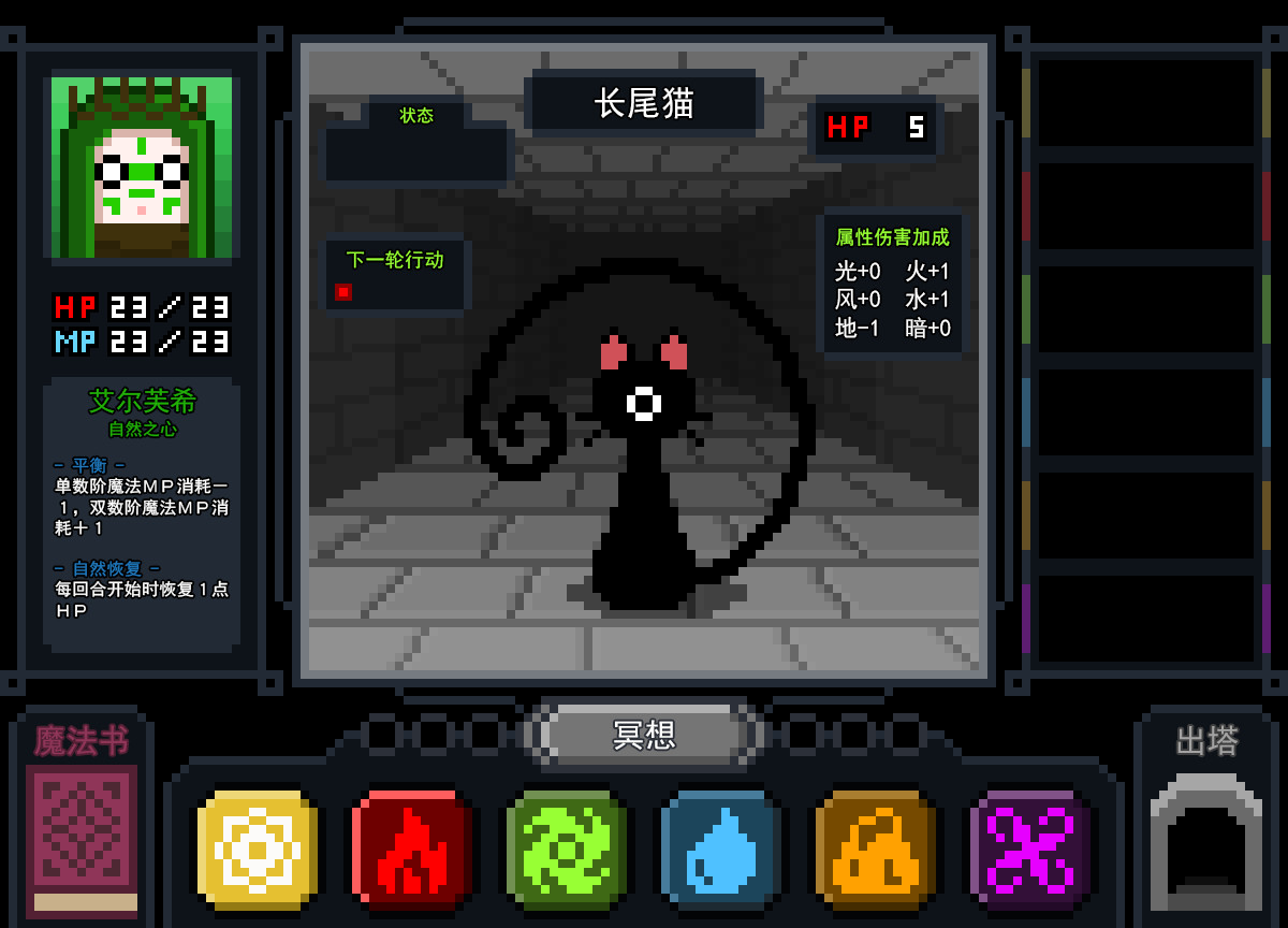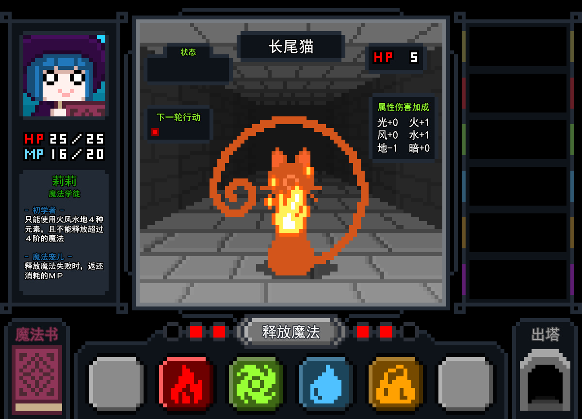 一款轻度rogue的地牢类游戏 使用不同元素组合魔法进行战斗