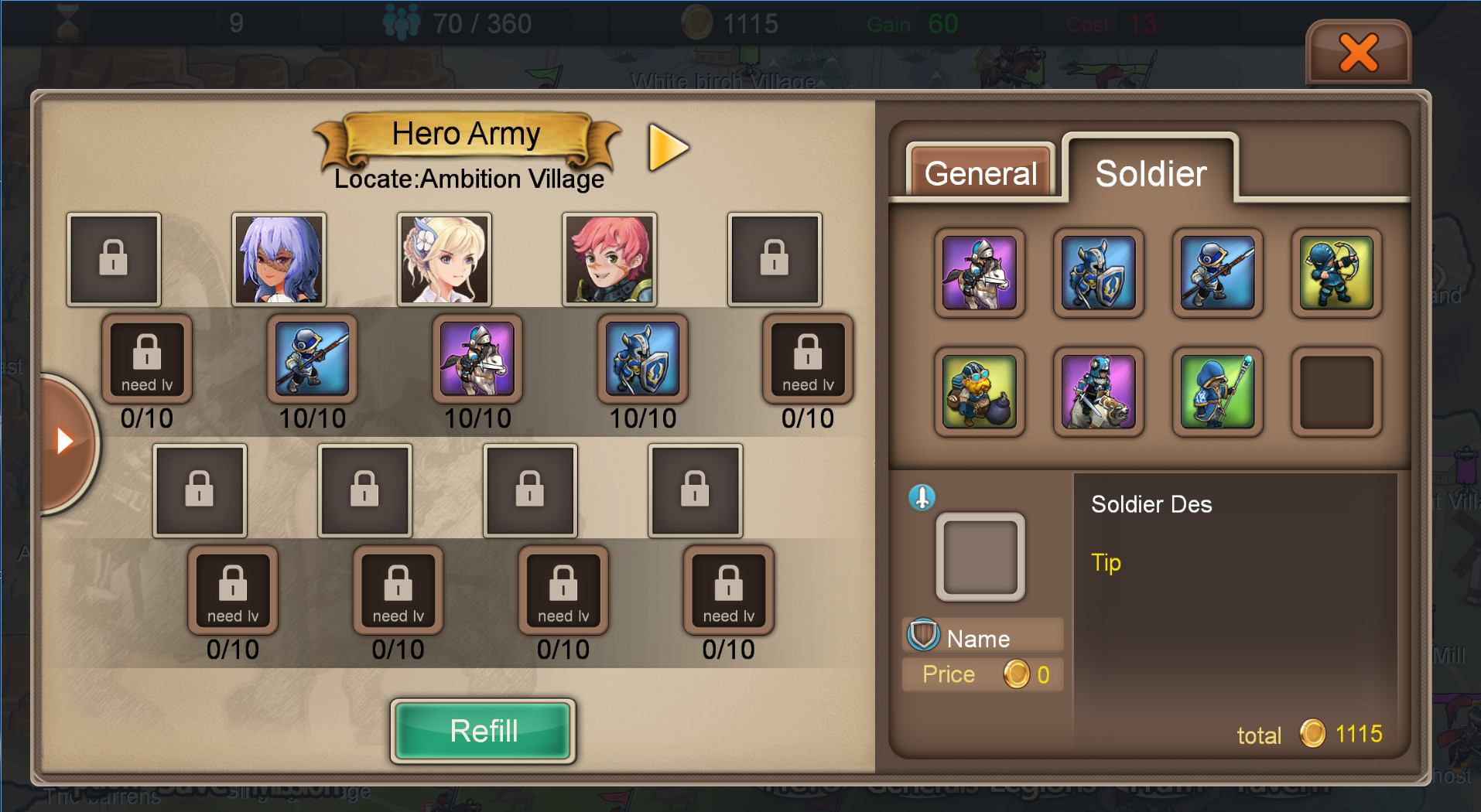 顾名思义,英雄是英雄小队的核心,不同的英雄有不同的配点和擅长率领不同的兵种。