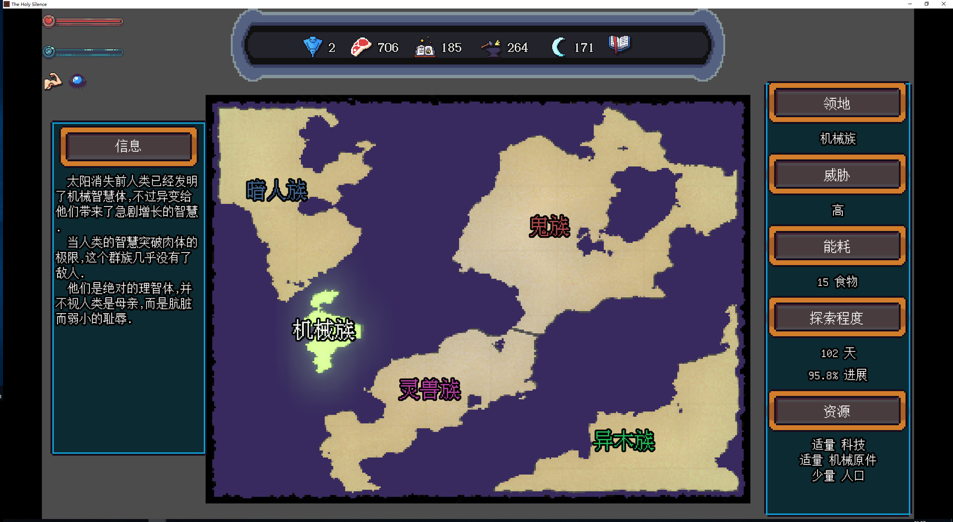8. 随着探索进行敌人会不断变强, 仔细决定每次探索的种族.