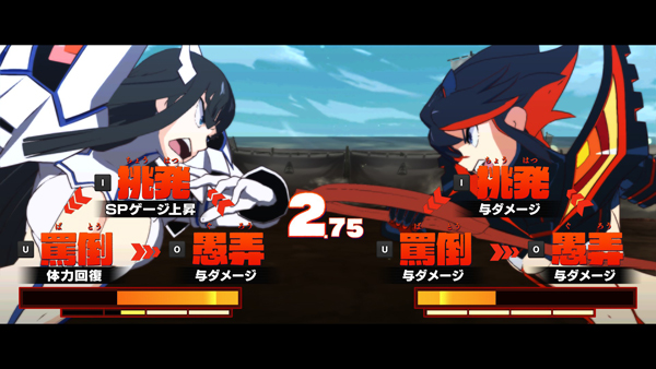 斩服少女独有的全新战斗系统,忠实再现了原作动画中“一边和对手战斗,一边打嘴炮”的场景。未遭到对手攻击时,只要发动“血威爆发”,即可与对手展开嘴炮划拳!