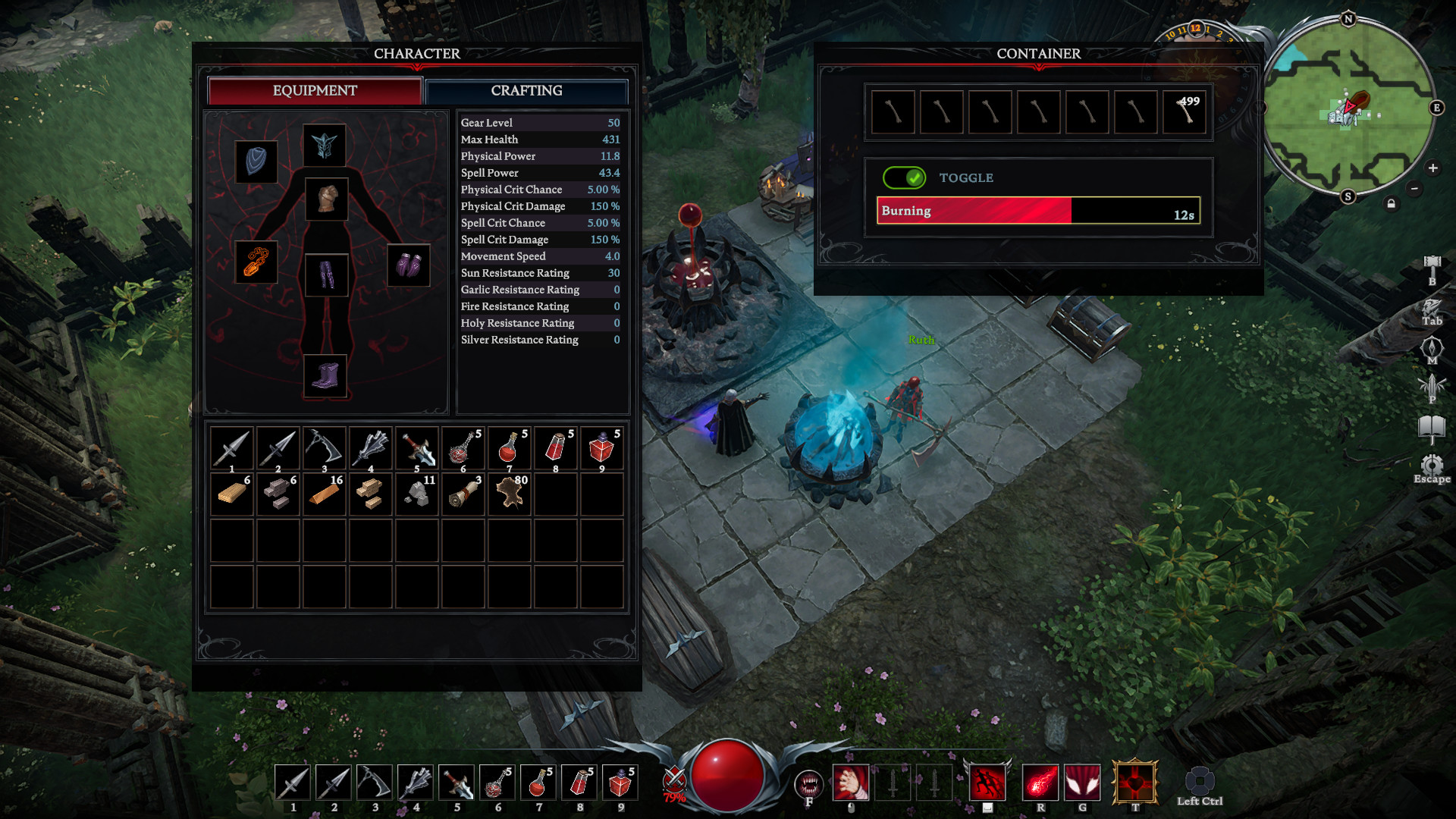 学习并掌握一系列致命武器和邪恶能力的使用。在 V Rising中,你可以使用精确的 WASD 控制和基于光标的瞄准来射击和躲避 - 无需点击移动。将武器与一系列战斗中获得的法术相结合,定制你的吸血鬼以适应你的游戏风格。掌握你的技能并释放你邪恶的力量。