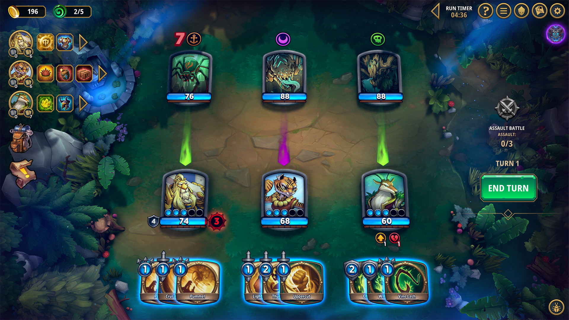 Many unique heroes with varying mechanics and themes to keep you brainstorming for new compositions and combinations. Each has a unique starting deck of Ability cards that fits one of 6 classes. Triple-supports? All ranged Abilities? Damage-over-time heavy? Anything goes! Find the play-style that works for you.