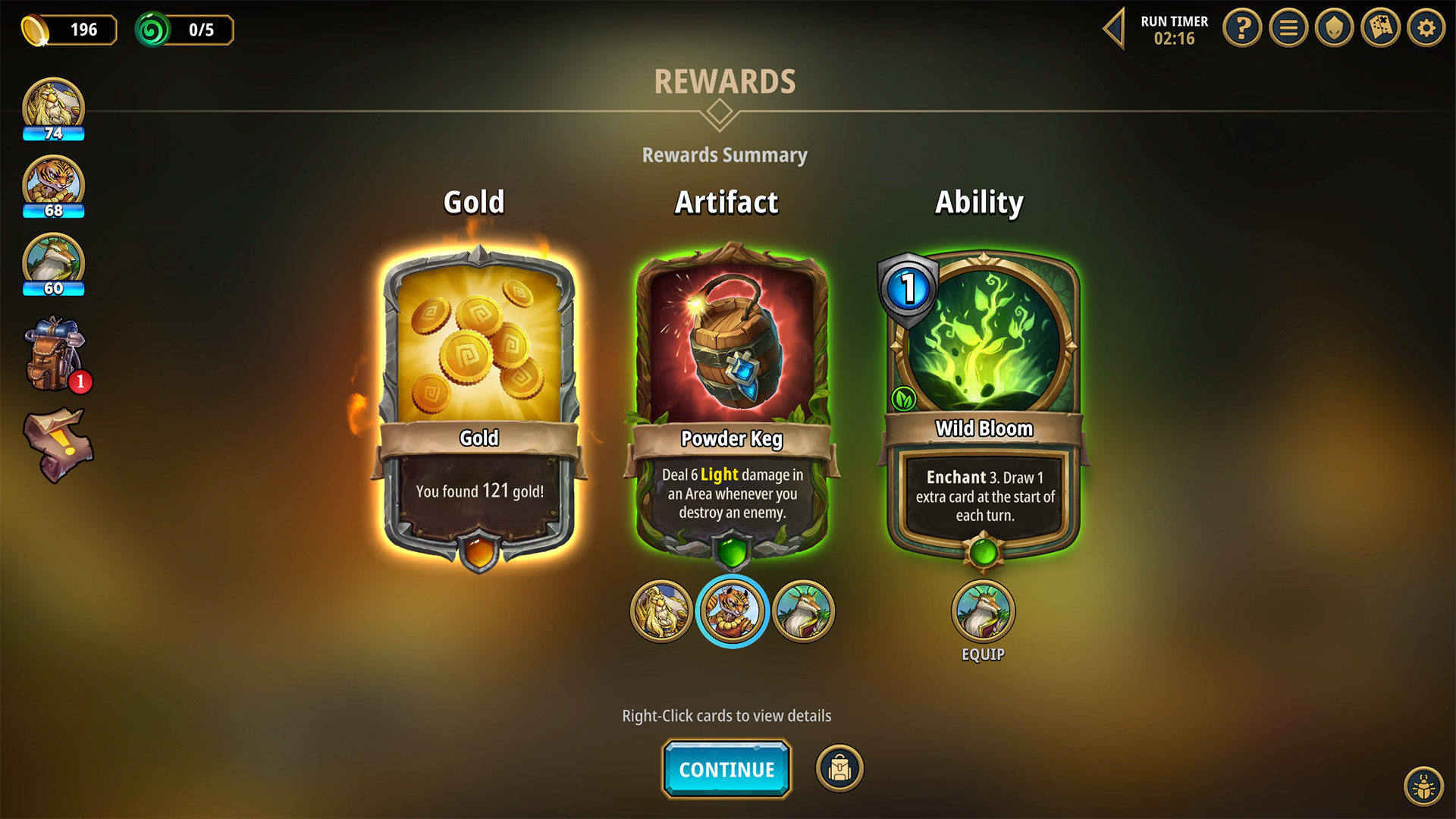 Find powerful artifacts, gain new skills from cards, learn cross-character abilities, and discover consumable items throughout your journeys. You can edit your Heroes' ability decks and equipment rosters at any time outside of combat.