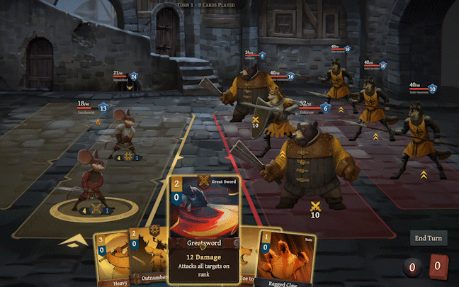 建立你的卡组,并与多达6名小队成员使用卡牌进行战斗,穿越黎明之刻。 每位角色都拥有一系列独特的卡牌和能力,以此建立你的最强卡组。 在通往城市警卫队长的道路上击败每个精英对手,削弱灭族者的核心力量。 你和你的弟兄可能会为此而倒下,但总会有其他人传递薪火。 黑足氏族会铭记逝者,永不松懈。 穿越城市时你还将遇到一系列事件,这些事件可能会为你提供帮助,也有可能会造成麻烦。