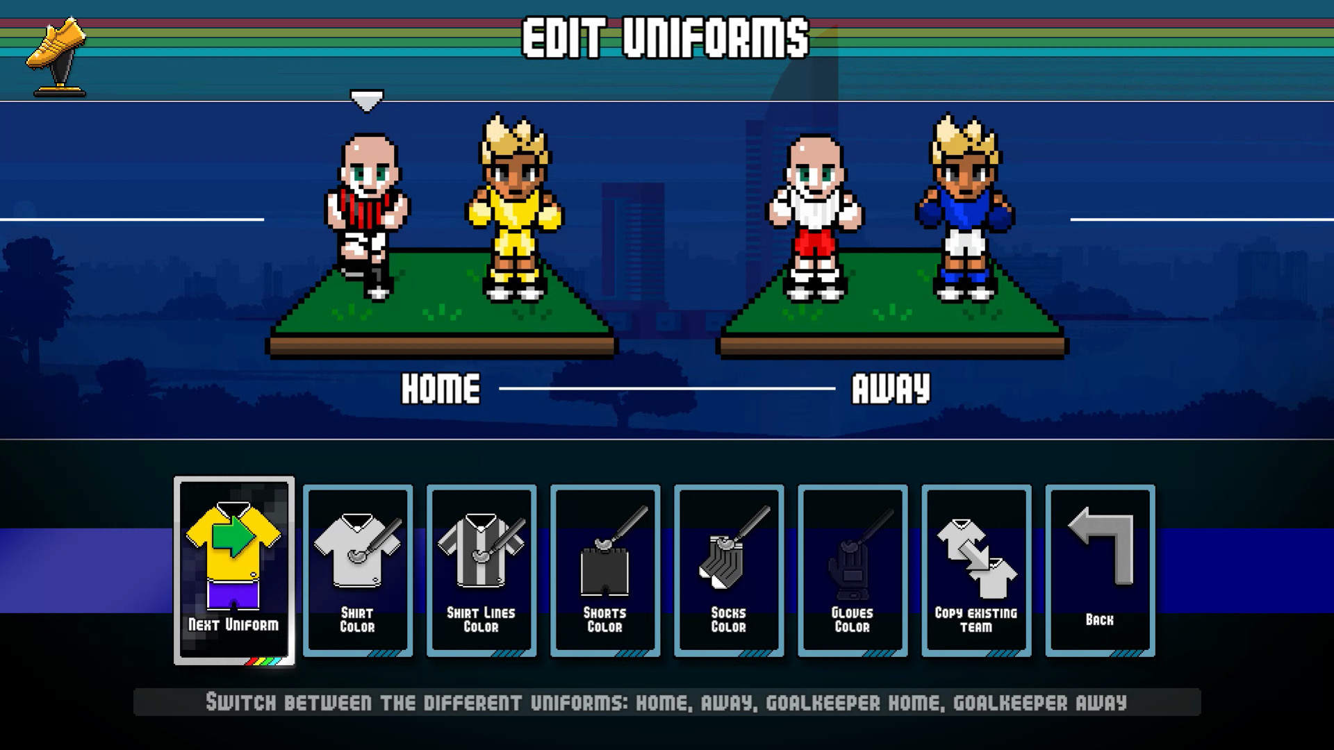 • 球队可以完全自定义(名称、球员、球衣颜色、俱乐部旗帜等
