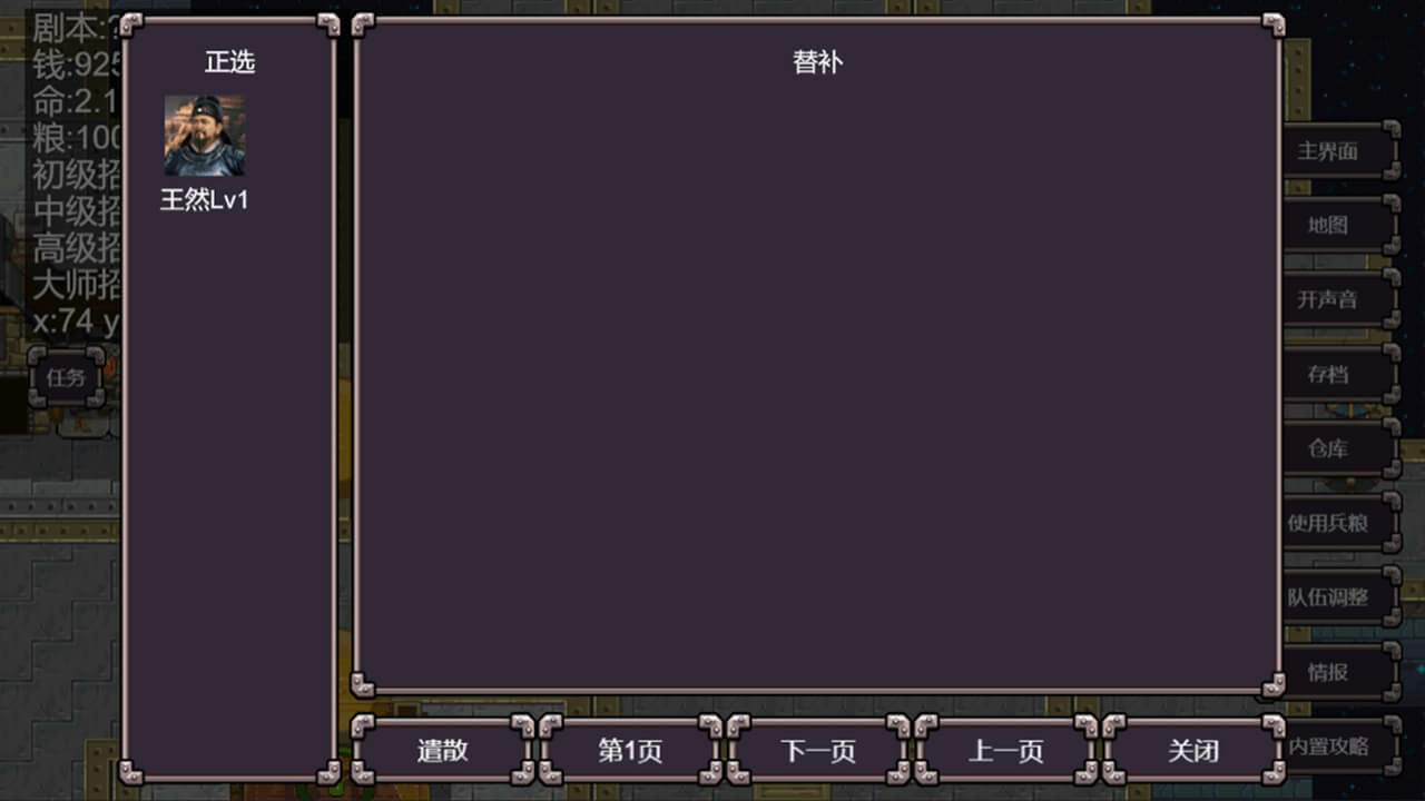 队伍调整下阵当前队员,上阵替补队员,以及遣散未被锁定的队员(通常是遣散拥有丹精·?的队员以获得资质丹)