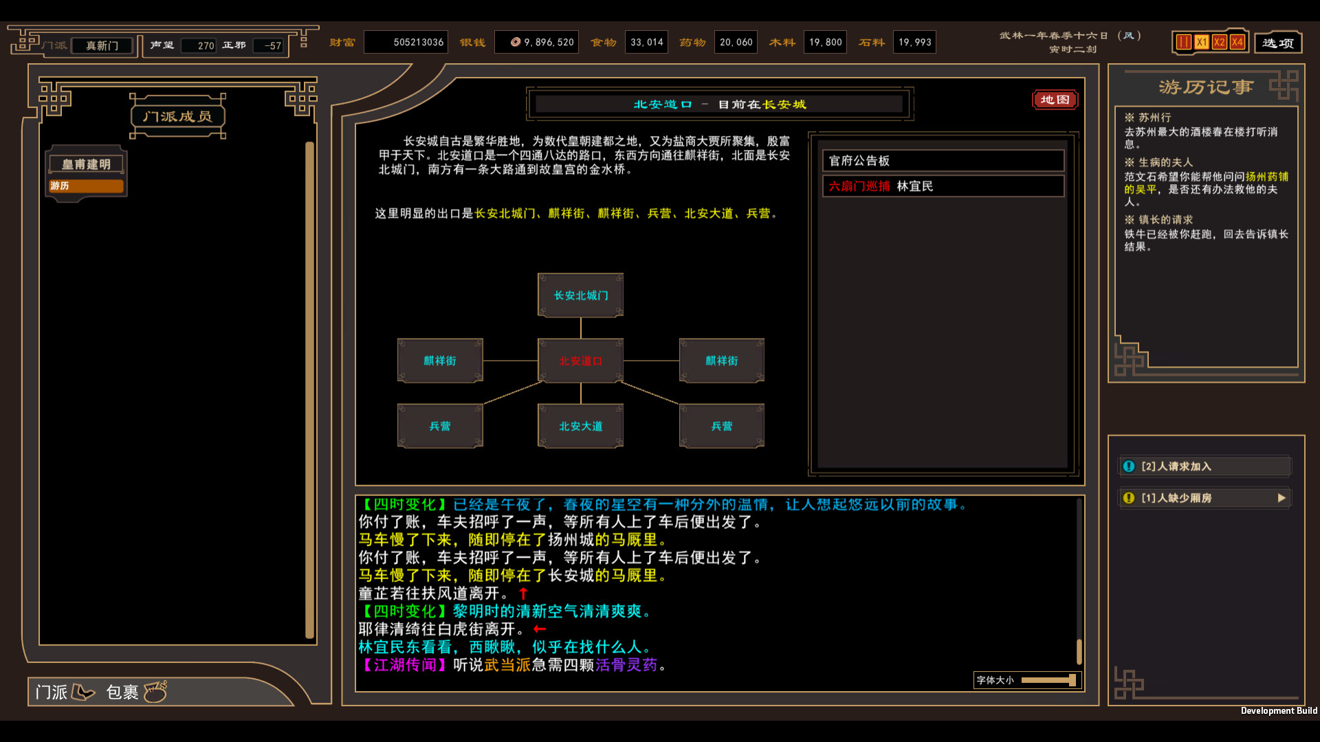 游戏的游历玩法以MUD类游戏为基础,构建一个开放的江湖。你可以摆脱主线剧情的限制,带领弟子在地图中自由探索。