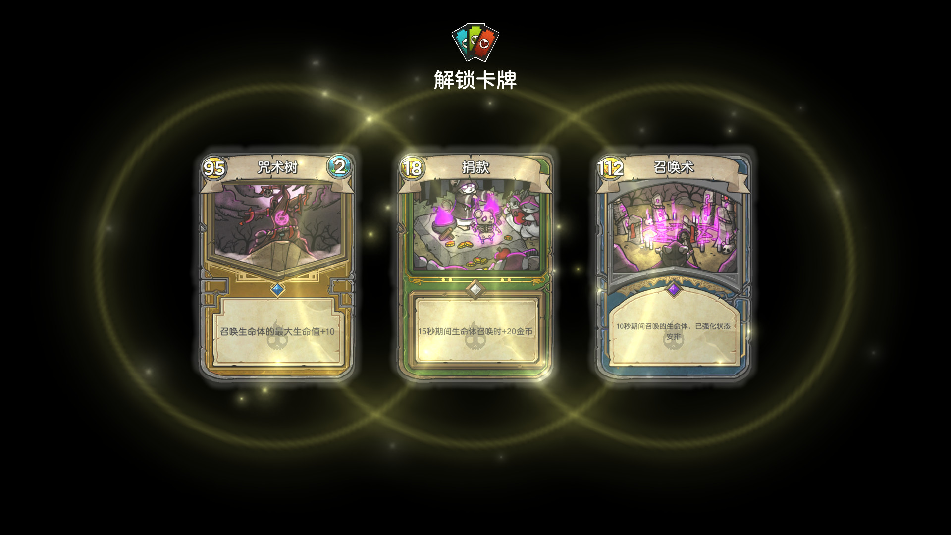 500多张不同特性的游戏卡牌。