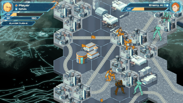 有四位指挥官可供选择,每位指挥官代表一个不同的派系,具有自己独特的力量,特点和游戏风格。移动作战单位,与敌方机甲发生冲突时要进行战术思考,在以 90 年代日本动画为灵感的戏剧性战斗序列中观察结果。
