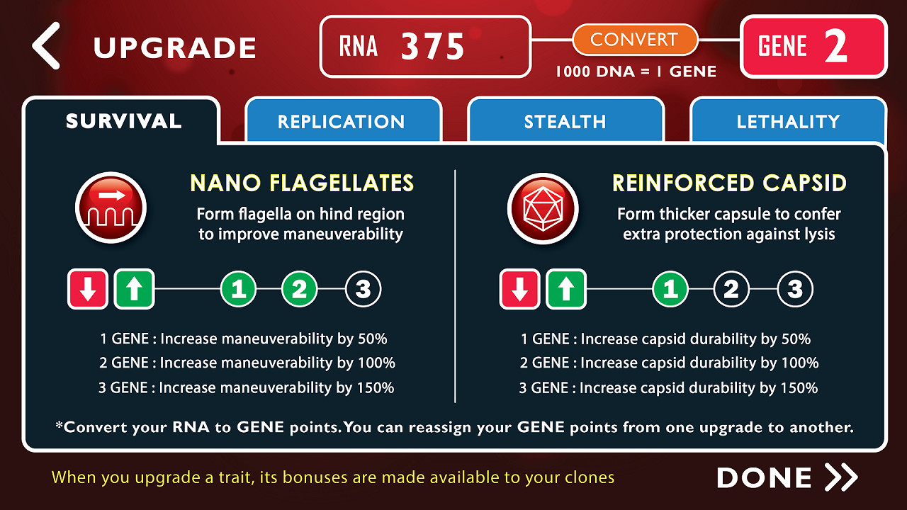 多种升级和突变功能使您比免疫系统更具优势。