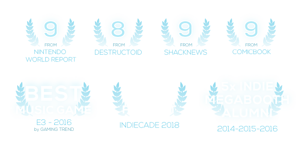 We have many different game experiences to offer! Story mode helps you learn the ropes with our intermediate-ish tracks and the optional Casual mode. When you think you’re ready, Challenge Runs is where you get to prove yourself: get judged on your skills by playing through randomly picked tracks.
