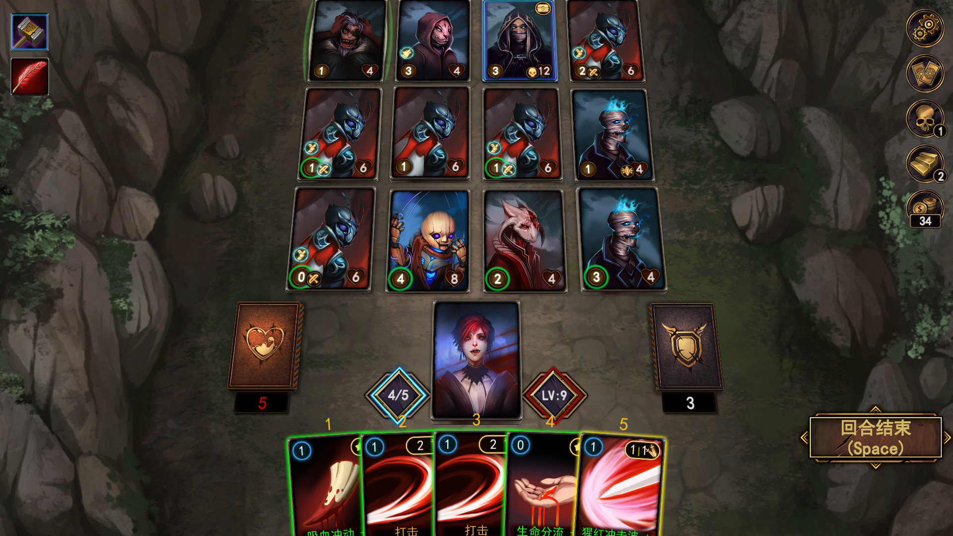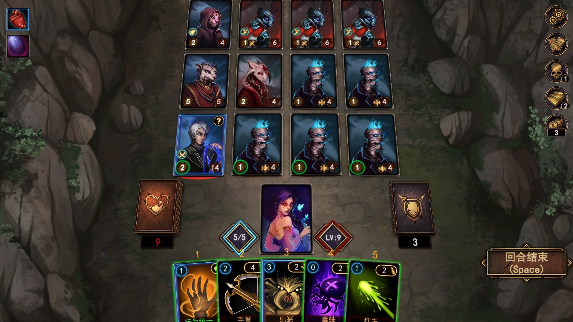 您的生命值等于所持有的卡牌数量。每受到1点伤害,敌人便夺走1张牌,卡牌耗尽则游戏失败。