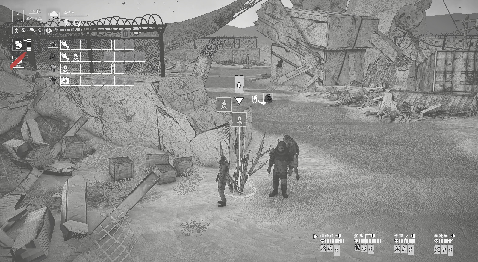 你需要管理所有的食物、装备和药物,并保护你的队员不陷入疯狂和绝望之中。在荒野中寻找并收集关键的资源,保证队伍的生存。