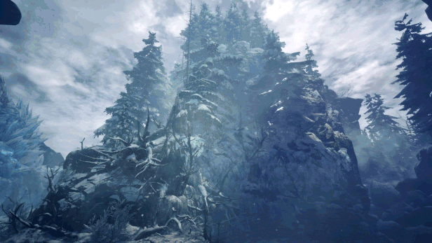 不曾有人涉足的寒地上孕育出未知的生态系统。 “永霜冻土”是一片存在着个性丰富的环境生物和怪物的极寒之地。地形也呈现出这里的特征:厚得令人寸步难行的深雪、热气腾腾的温泉,以及随时有可能崩塌的不安定地面等等,拥有十分丰富的变化。 “Monster Hunter”系列至今的作品中最为细致的雪景亦是看点之一。