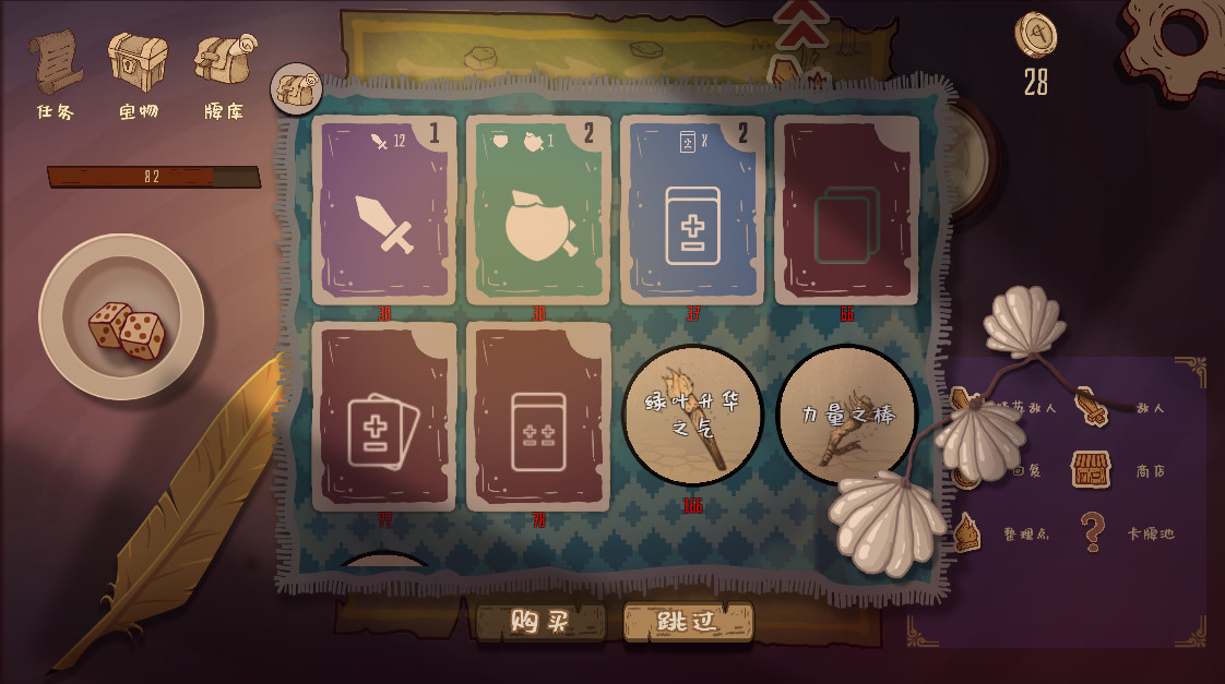 每张技能卡都有数字和颜色,通过数字或颜色组合来发动卡牌,越厉害的卡牌发动难度越高,每个职业都有大量专属技能卡和宝物。