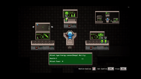用重组机器人消耗变异细胞配齐装备。