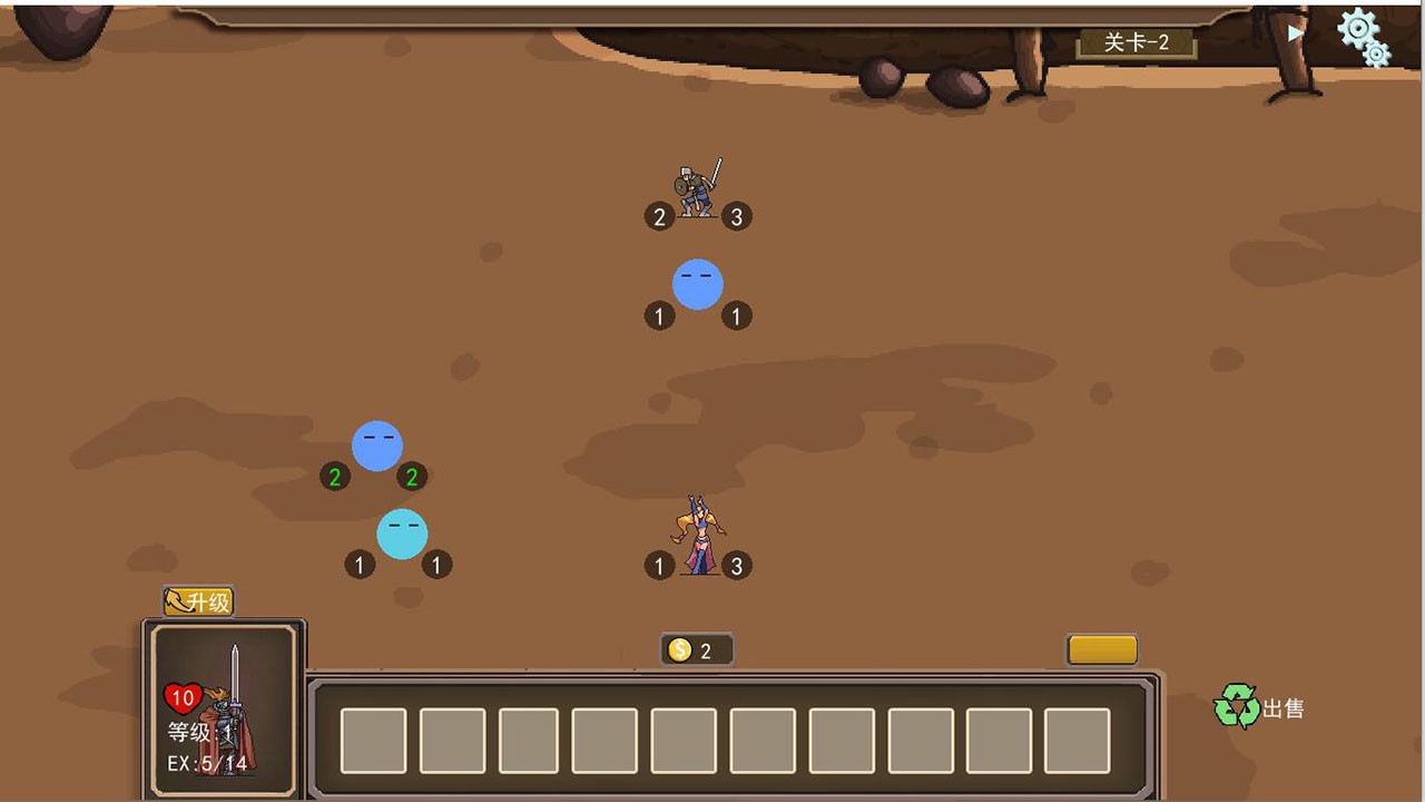 玩家和电脑都是10个战斗格子,分成前后两排,前排的单位先攻击,也会优先被攻击