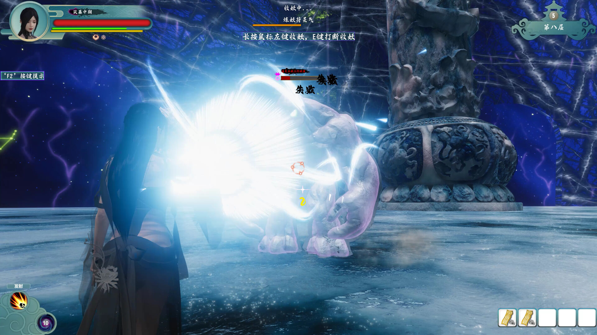3、3D战斗: 游戏采用第三人称战斗,大多数怪物都可以御空飞行,玩家也可以御剑飞行进行攻击。