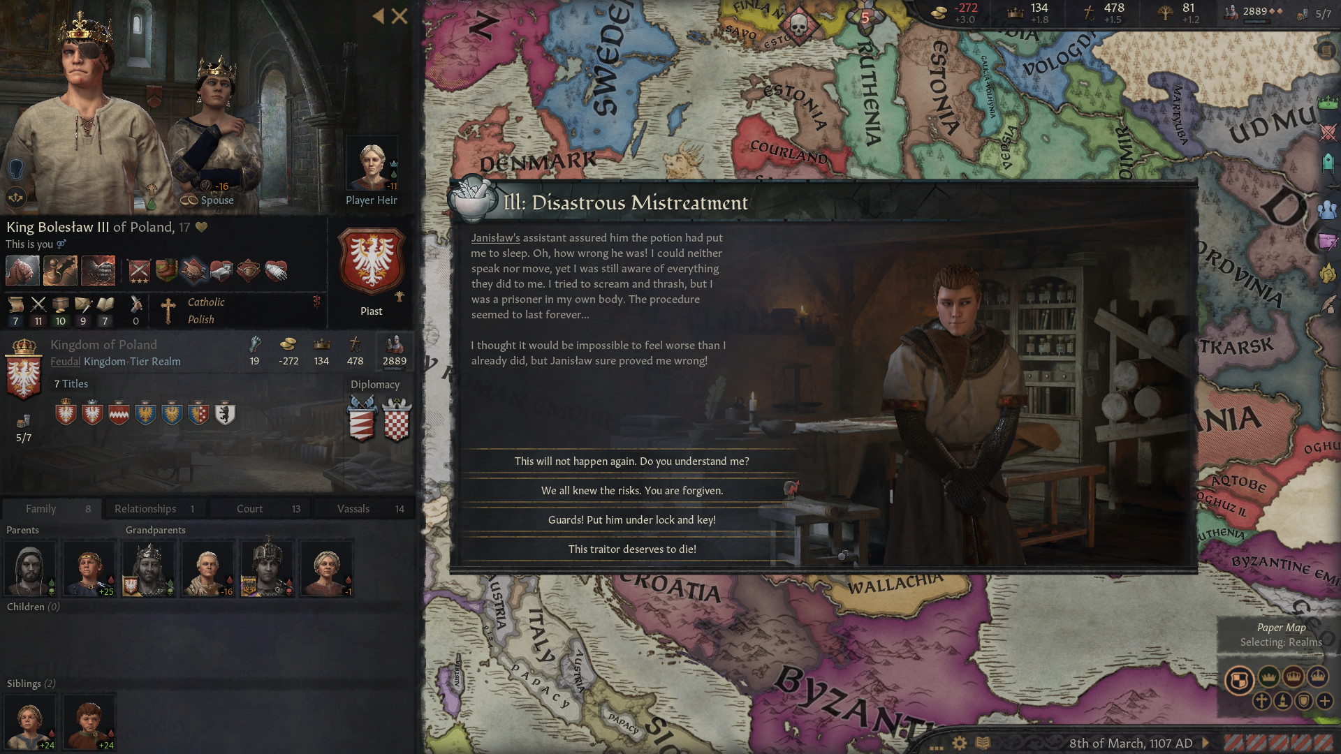• 仔细研究中世纪,掌握您的家族并扩展您的王朝。始于西元 867 或 1066 年,获得领土、头衔与附庸国,巩固配得上您皇室血脉的王国。无论您的离世是否在计划之内,都不影响大局,您的血统会由新的可游玩角色所继承。