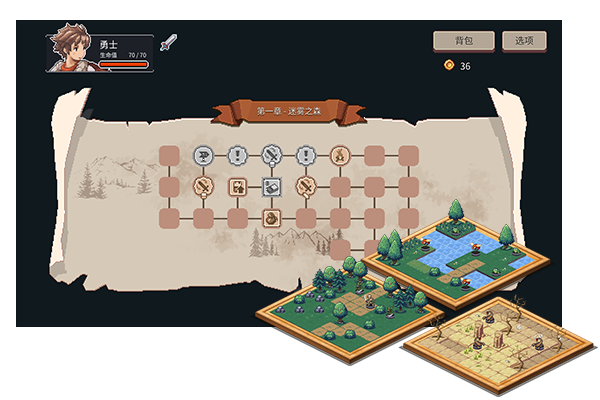 3、每次游戏都是新的冒险!随机章节地图和冒险遭遇;随机生成独特像素风格的战斗和地形;
