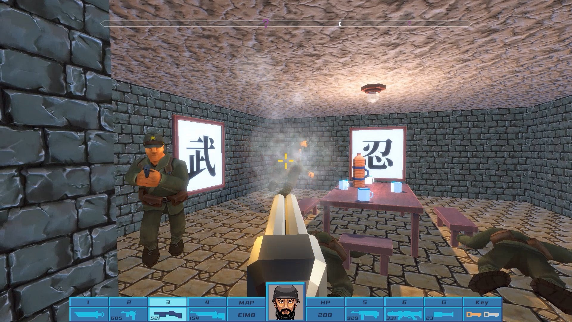 嘿!我是《德军总部3D》和约翰·罗梅洛的超级粉丝。我做这款游戏是为了向他们表达敬意。我收集了很多与约翰·罗梅洛有关的视频和文章加以研究,学到了很多游戏设计理念,并运用在我做的这款游戏中。例如:马蹄形关卡设计。